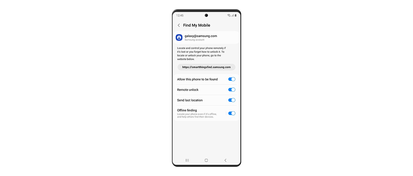• Du kannst verlorene Geräte auch mit der SmartThings Find-Funktion in der SmartThings App orten. Um SmartThings Find zu nutzen, muss in den Einstellungen von „Find My Mobile“ die Option „Erlauben, dass dieses Telefon gefunden wird" aktiviert sein.