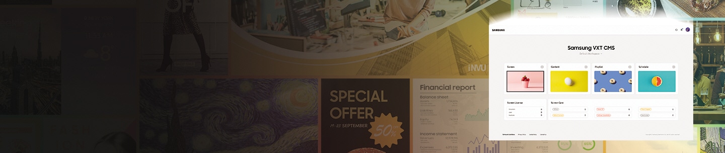 Samsung VXT CMS ist eine Cloud-basierte Lösung für Digital Signage-Geräte, die einen flexiblen und effizienten Betrieb, eine schnellere Einrichtung und Systemwiederherstellung sowie hochgradig intuitive Funktionen zur Erstellung und Verwaltung von Inhalten bietet. Dies ermöglicht Unternehmen, das leistungsstarke Potenzial von Business-Displays zu erschließen.
