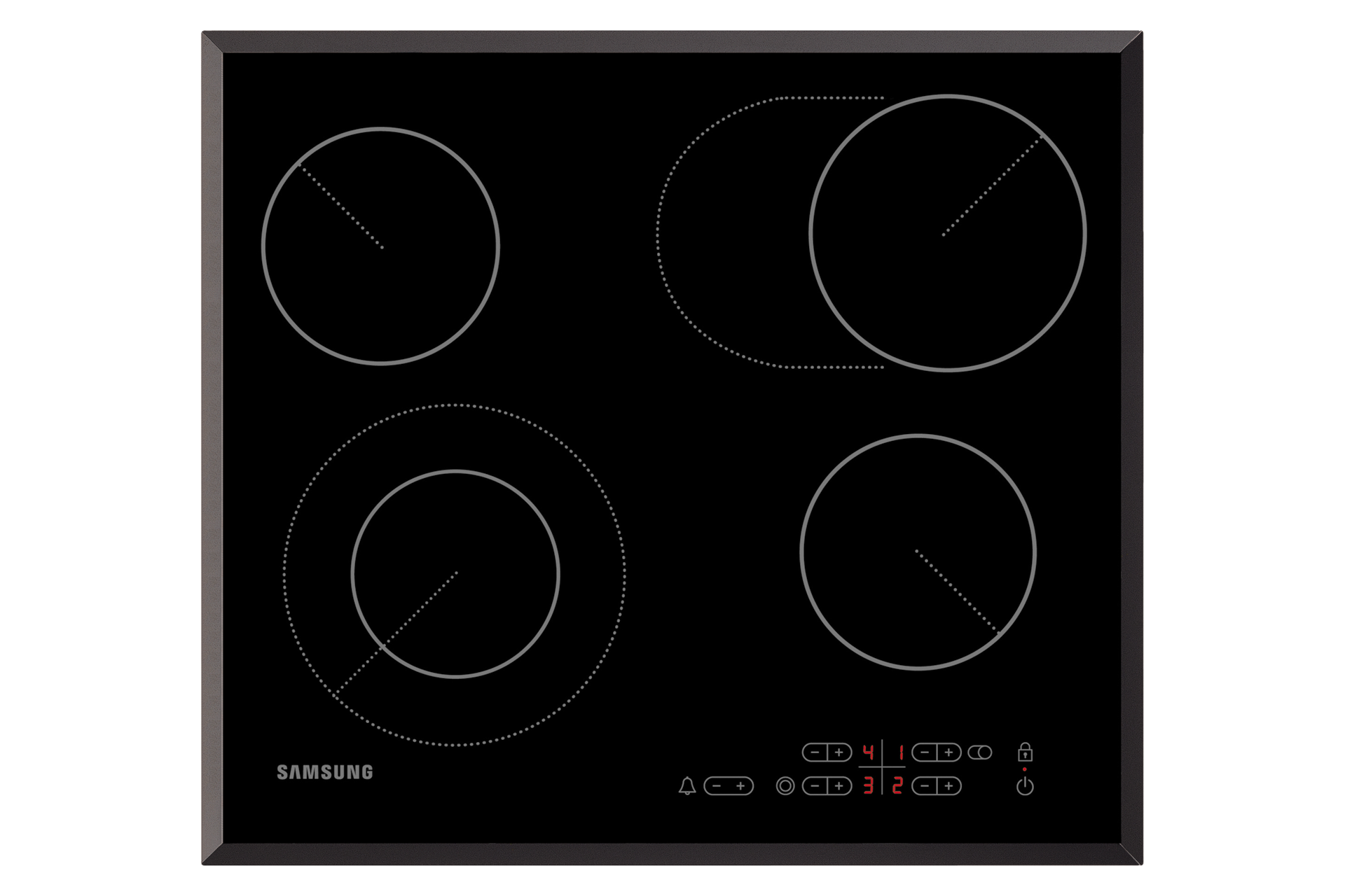 Bei Samsungs leicht zu reinigendem Glas-Keramikkochfeld sind auch Öl-Spritzer und Flecken kein Problem. Das Reinigen von Flecken und Fett ist bei dem eleganten und ergonomischen Design ein Kinderspiel und mit einem feuchten Tuch und einem schnellen Wisch erledigt. Da die Keramikoberfläche nicht so heiß wird wie andere Elektro-Kochfelder, werden Spritzer auch nicht anbrennen, sodass Sie am Ende mehr Zeit damit verbringen, Ihren Teller zu spülen als das Kochfeld zu reinigen.