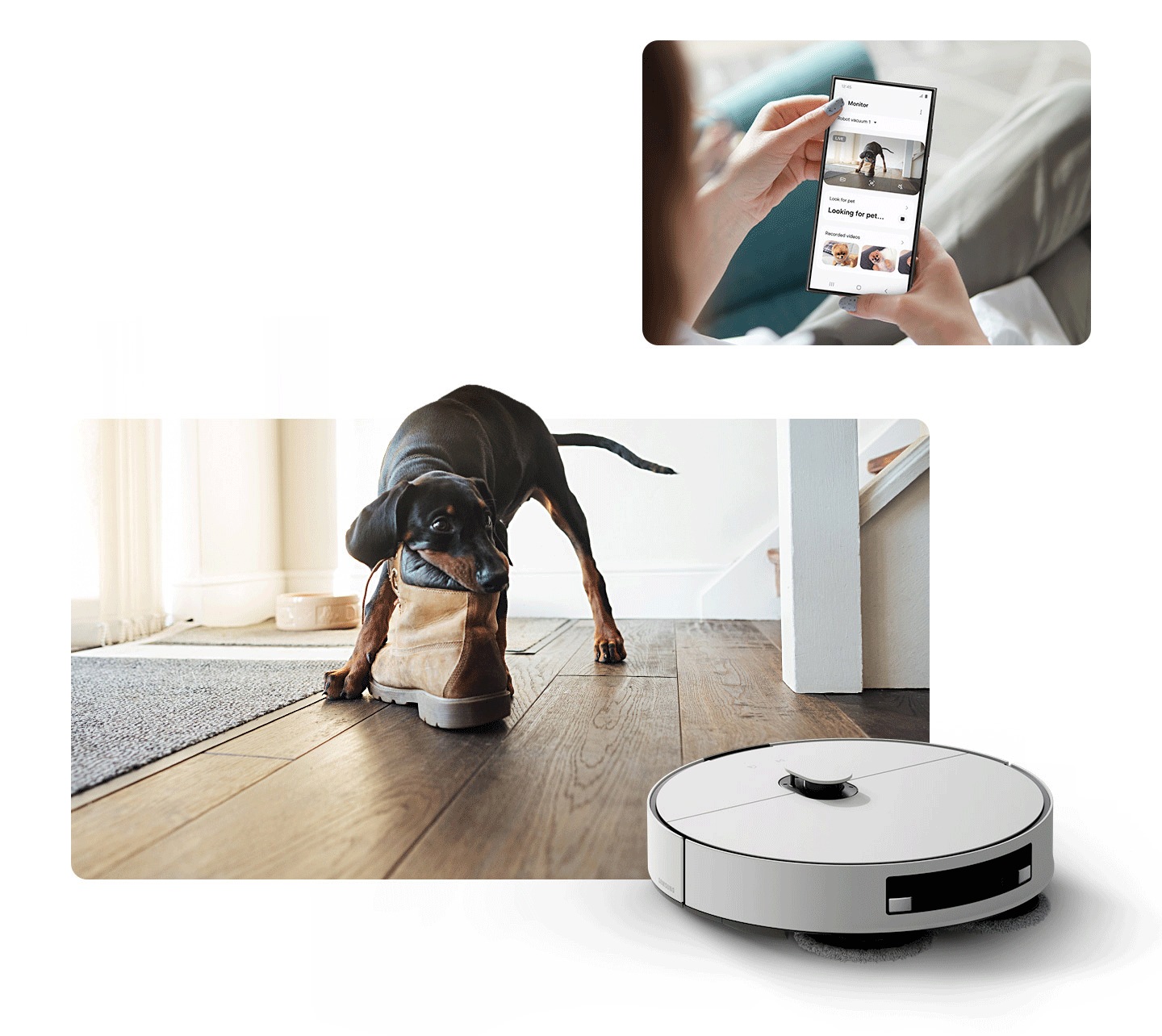 Hunde und Katzen brauchen ihren Auslauf, ihre Spiel- und Kuschelzeiten. Doch Herrchen und Frauchen müssen manchmal auch arbeiten, einkaufen und die Kinder abholen. Damit in dieser Zeit – vor allem junge Hunde und Katzen – nicht auf blöde Gedanken kommen und vor lauter Langeweile an Möbeln kratzen und an Schuhen kauen, kann dein Saugroboter kurzfristig als Petsitter einspringen. Denn der Bespoke Jet Bot Combo™ erkennt dank eingebauter Kamera nicht nur, wenn sich dein Haustier vor lauter Langeweile an deinen Möbeln austobt. In Verbindung mit der SmartThings App kannst du dein Haustier auch aus der Ferne mit sanften Tönen und einer tierisch guten Playlist beruhigen.