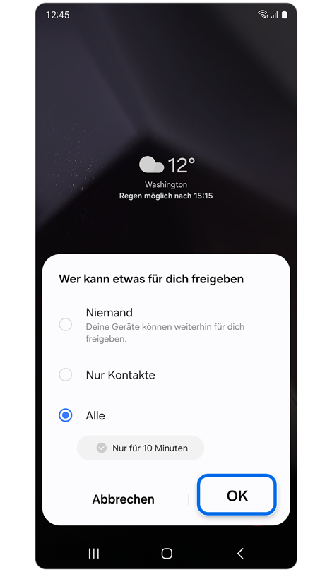 Hinweis: Geräte, die bei demselben Samsung Account angemeldet sind, können unabhängig von den Einstellungen immer Inhalte miteinander teilen.