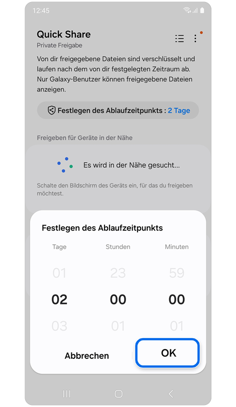 Teilen einer Datei zwischen Smartphones mit Quick Share