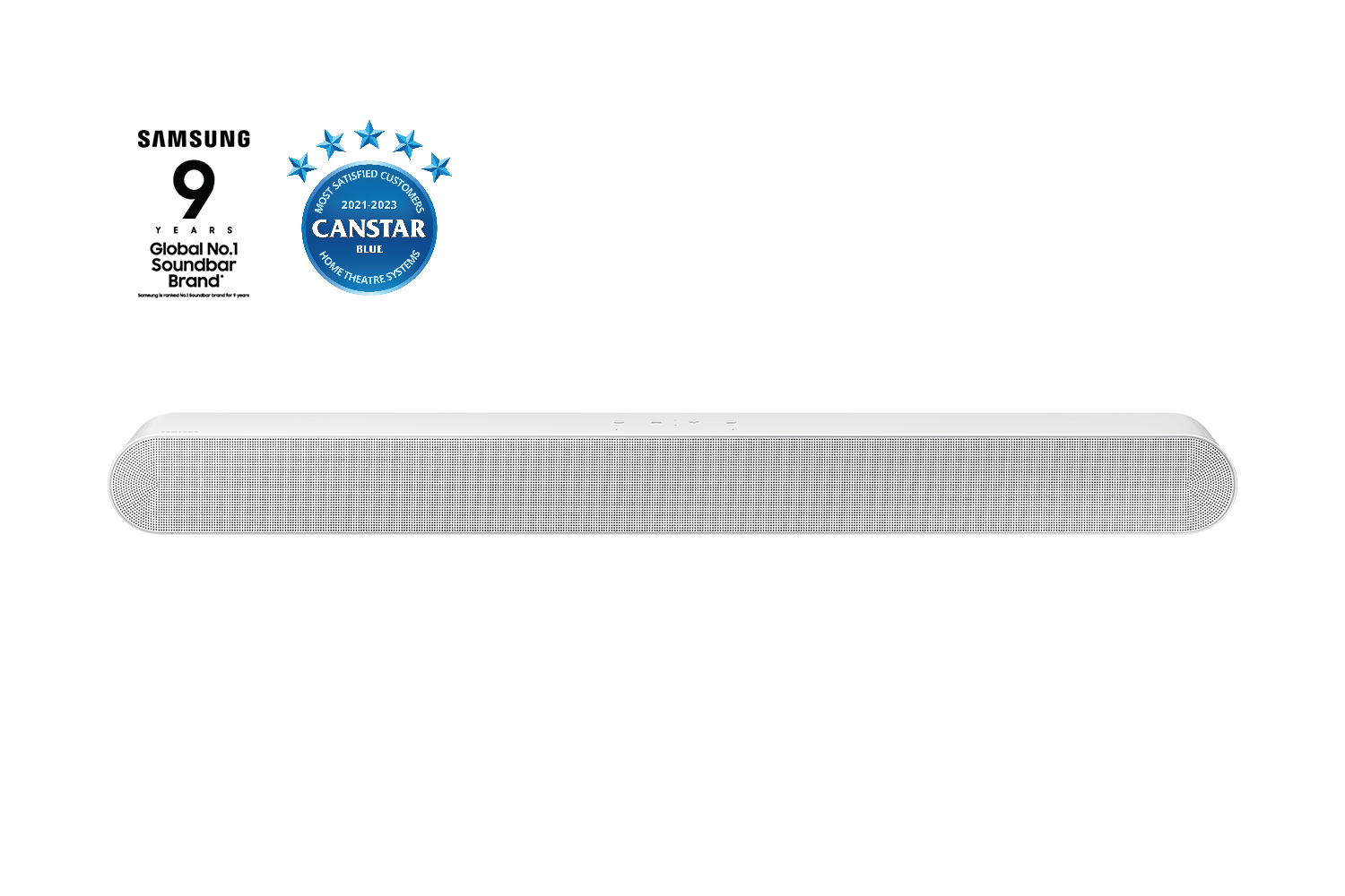 Make home entertainment stylish, with the Premium Lifestyle Design of the 5-channel S61B Soundbar. Finished in white textile, its all-in-one form includes two horn speakers for room-filling sound without the need for a separate subwoofer, and a centre speaker for clear, crisp dialogue.
