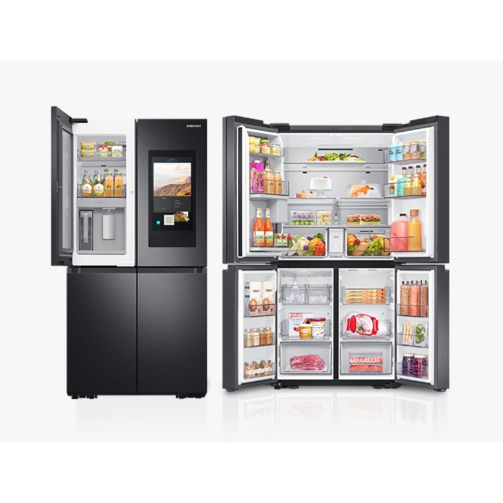 Family Hub™ fridges come with SmartThings and a touch screen on the exterior of the fridge that contains various smart features1. You can view inside your fridge without opening it on the screen and even on your phone from anywhere. You can display family photos, kids’ drawings, share calendars and even write little notes to your family. It’s more than a refrigerator.