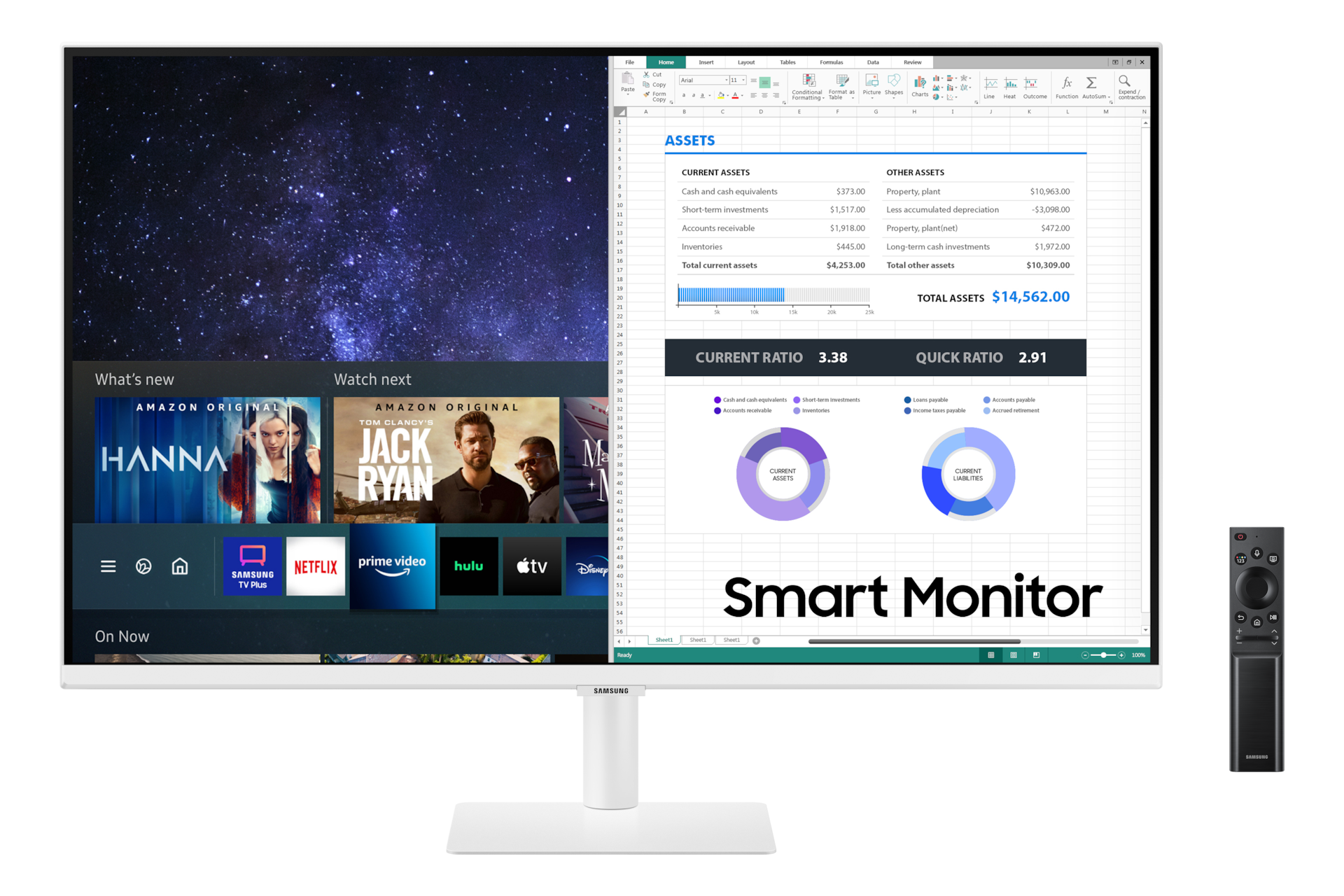 Samsung TV Plus & Universal Guide2Just tune in to Samsung TV Plus on the Smart Monitor to enjoy live and on demand content with no downloads or sign-up required. Universal Guide offers content recommendations on top apps such as Netflix and Prime Video so you can spend more time watching.