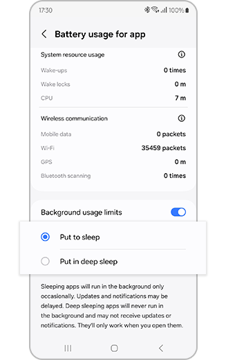 Put rarely used apps to sleep or in deep sleep
