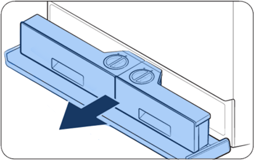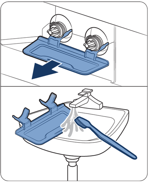 4. Remove the dispenser tray and clean it in running water to remove detergent or softener residue. Put it back in the tray.