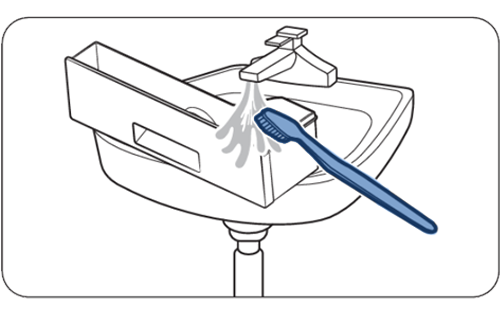 3. Clean the dispensers and all the other components under warm running water using a sift brush. Then wipe the components with a cloth or dry towel after cleaning.
