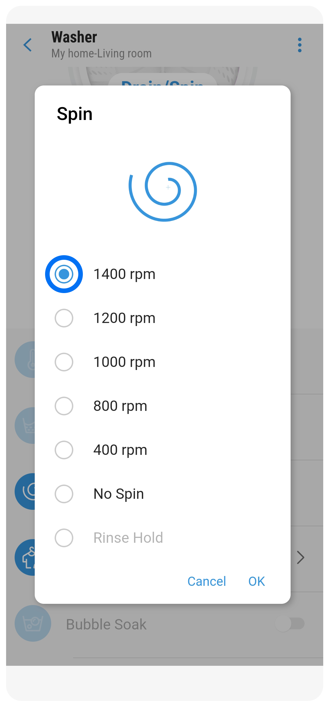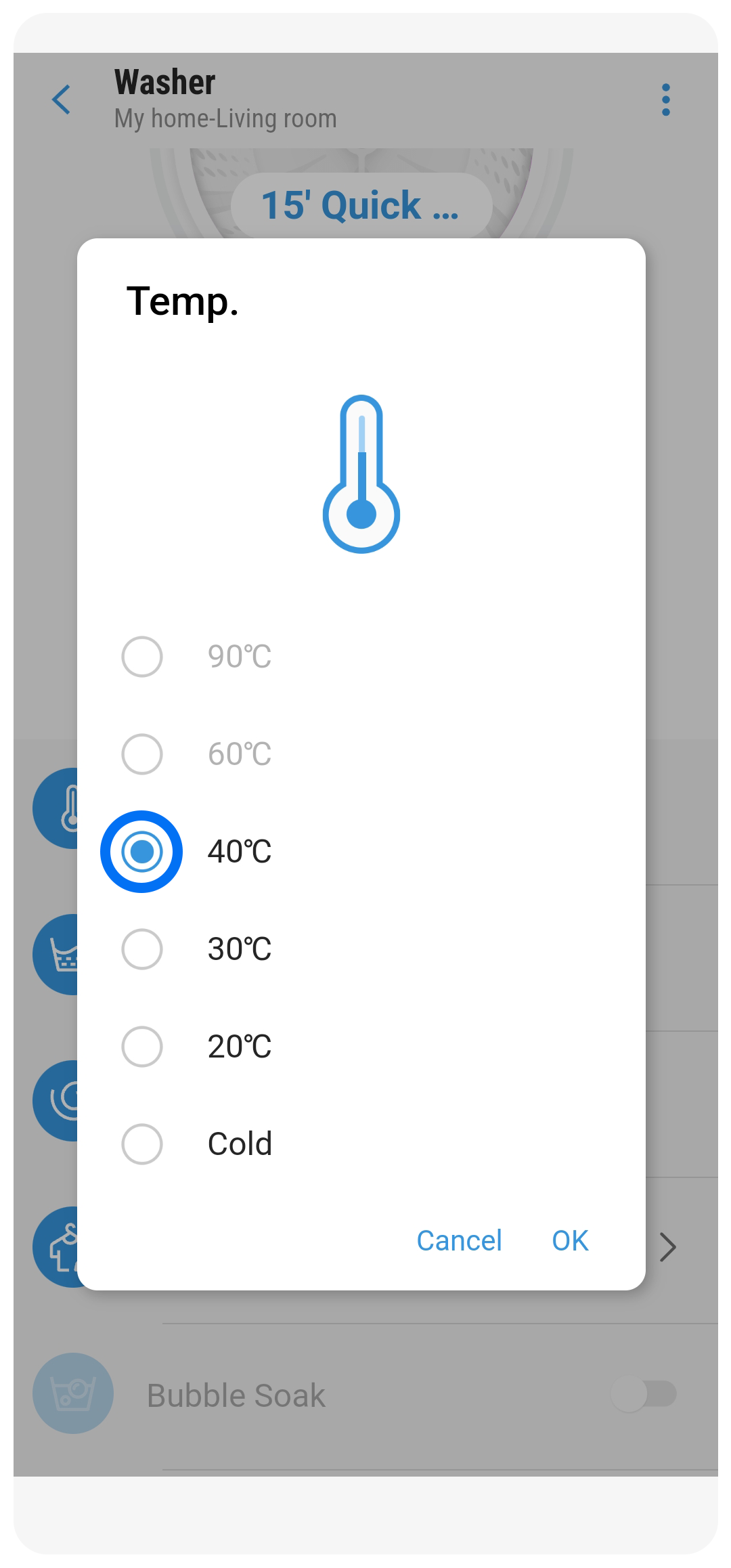 The SmartThings App allows you to efficiently control and manage your Samsung Washing Machine from your smartphone. Using the app, you can pre-select a cycle and send it to your washer.