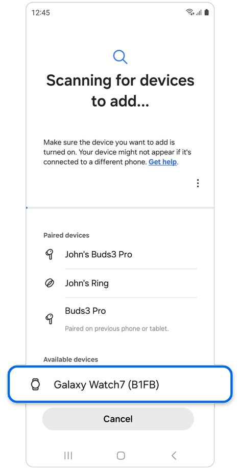 Note: Make sure that Bluetooth is enabled on your Galaxy phone so that it can detect wearable devices nearby, including your Galaxy Watch.