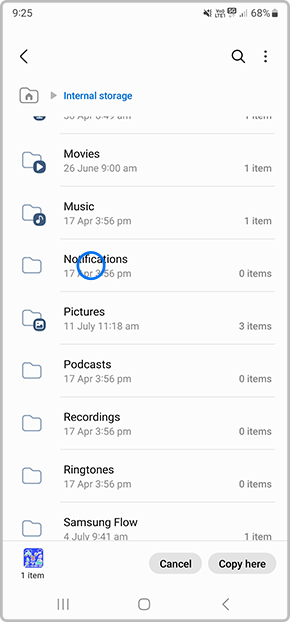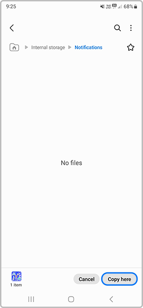 6. Tap on Copy here to copy your music file into your Notifications folder