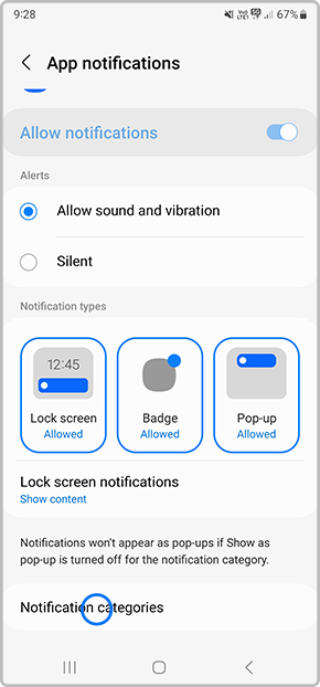 5. Select Notification categories