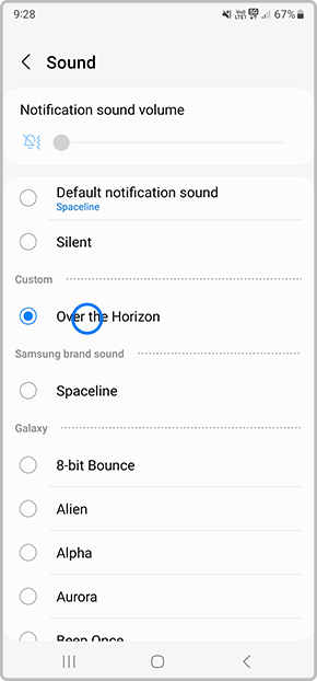 8. Tap on a sound then press the back button to apply changes