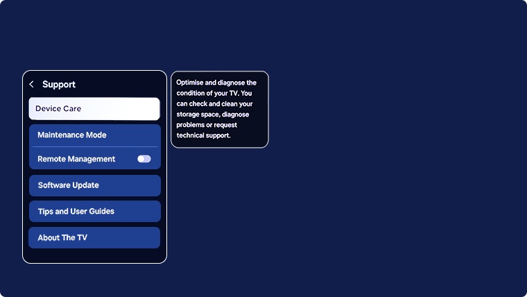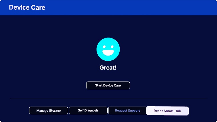 - 2016 - 2019 TVs: Settings > Support > Self Diagnosis > Reset Smart Hub