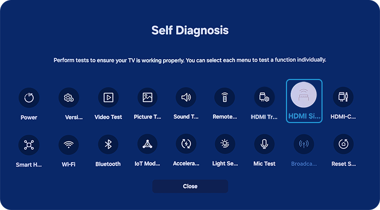 Step 5. Select HDMI Signal in the menu to check the signals, signal records and connections of external devices.