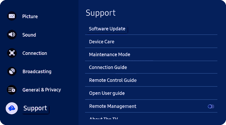 - If you are having trouble with your Samsung Smart TV, you should always check to see if there are any software updates available as these may contain a fix for your problem.