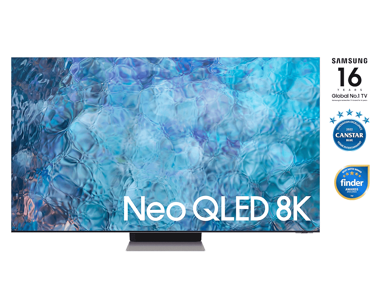 Experience the pinnacle of Samsung picture quality, with Quantum Matrix Technology Pro powered by Quantum Mini LED, superb 8K Upscaling, and beautiful Infinity Display on QN900A Neo QLED TV.