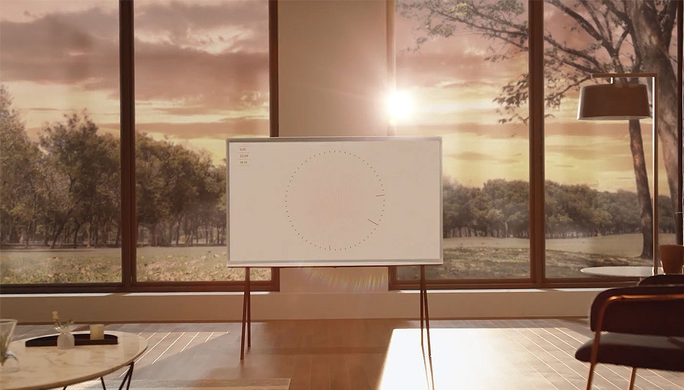 Display a background that fits your mood, or ask The Serif's voice assistant to choose a theme for you.