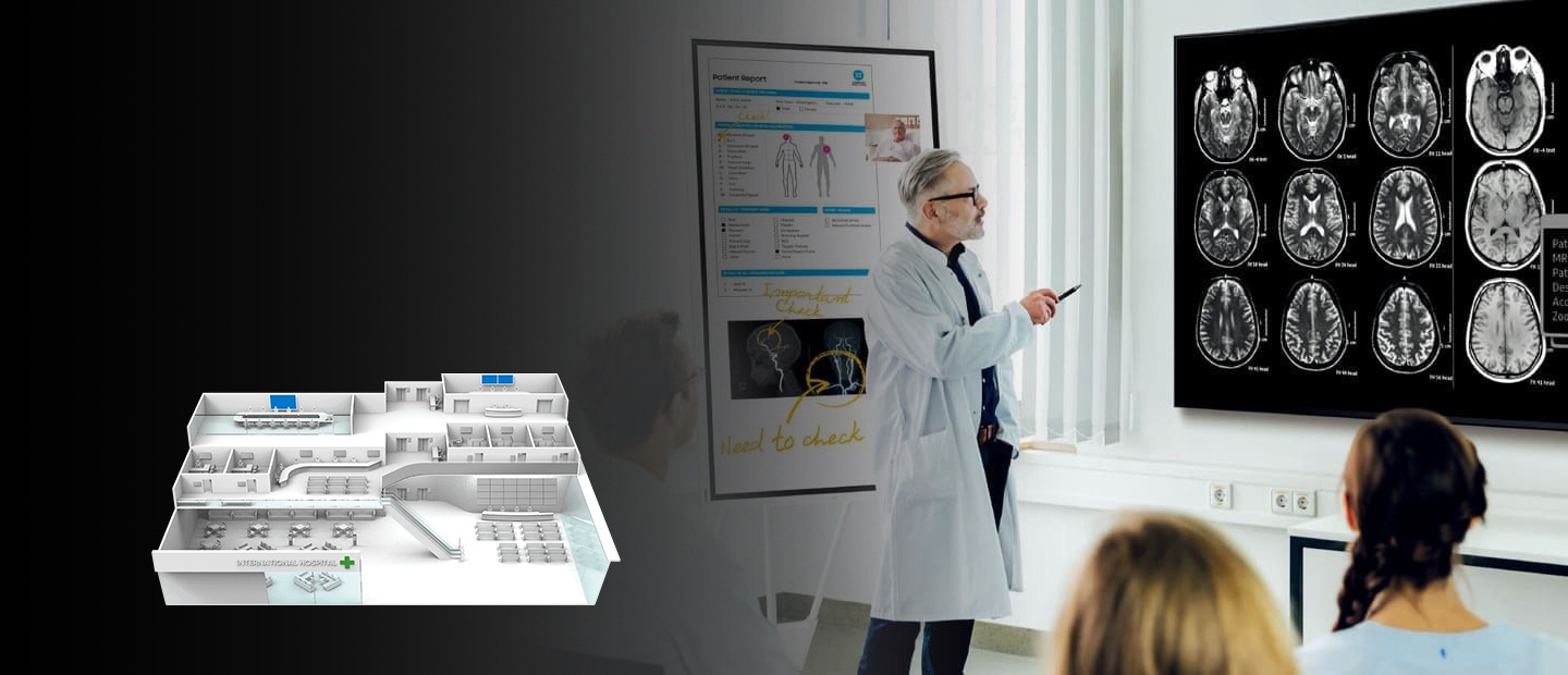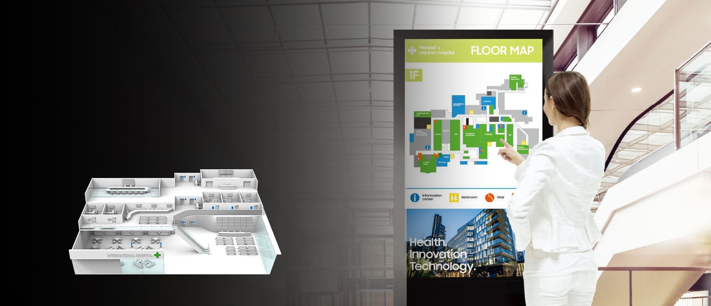 Rəqəmsal işarə həllərinin aparıcı qlobal təchizatçısı olan Samsung, lövhələr, gözləmə zonası, vestibül, tibb bacısı məntəqəsi, konfrans zalı, həkim kabineti və xəstə otağı daxil olmaqla, geniş ssenarilər üçün geniş ekran həllər portfelini təklif edir.