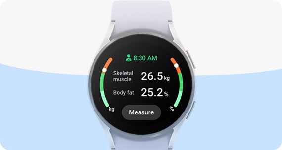 - ⁵NEMOJTE mjeriti sastav tijela ako imate ugrađen pejsmejker ili druge ugrađene medicinske uređaje. NEMOJTE mjeriti sastav tijela ako ste trudni. Rezultati mjerenja možda neće biti tačni ako ste mlađi od 20 godina. Sastav tijela je funkcija podržana samo u Samsung Galaxy Watch4 seriji i kasnijim modelima Galaxy Watch.