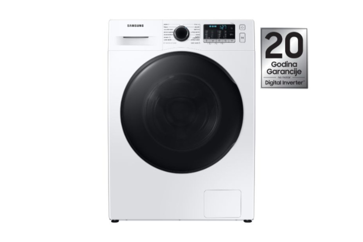 *Uglavnom, nivo smanjenja buke je 5dBA i 3dBA za cikluse pranja i centrifugiranja zasebno. Podaci su zasnovani na oznaci ERP, F500 8 kg 1400 o/min WF80F5E5P4W za digitalni inverterski motor i Vistula 8 kg, 1400 o/min WF1804WPC za univerzalni motor. ** Dodijeljen certifikat o 23-godišnjoj trajnosti od strane Udruženja za električne, elektronske i informatičke tehnologije u Njemačkoj (Verband Deutscher Elektrotechniker – VDE). Stvarni vijek trajanja može varirati ovisno o okolnostima korištenja. *** Od maja 2022. 20 godina garancije na dijelove primjenjivo je samo na motor invertera.