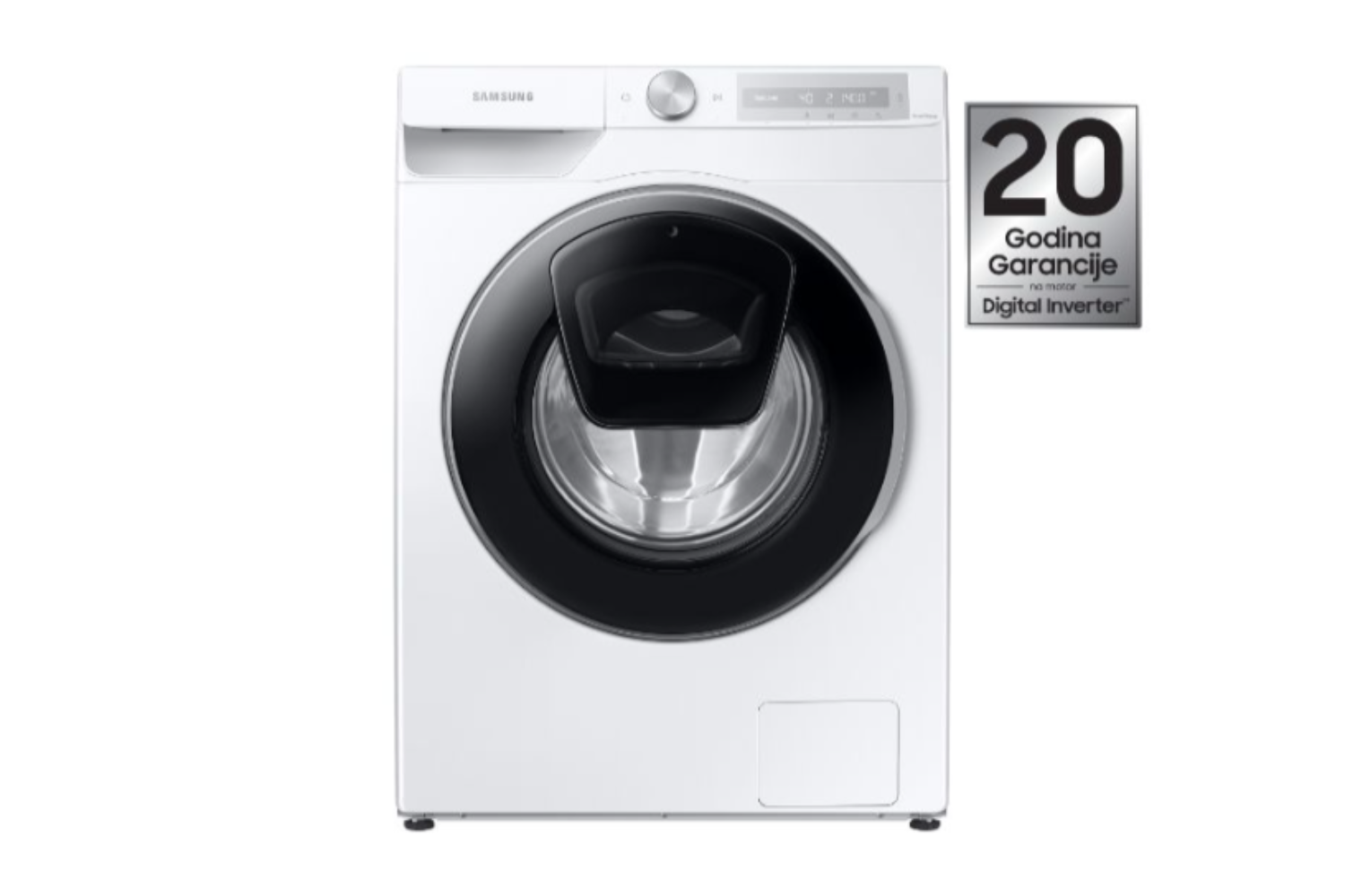 *Uglavnom, nivo smanjenja buke je 5dBA i 3dBA za cikluse pranja i centrifugiranja zasebno. Podaci su zasnovani na oznaci ERP, F500 8 kg 1400 o/min WF80F5E5P4W za digitalni inverterski motor i Vistula 8 kg, 1400 o/min WF1804WPC za univerzalni motor. ** Dodijeljen certifikat o 23-godišnjoj trajnosti od strane Udruženja za električne, elektronske i informatičke tehnologije u Njemačkoj (Verband Deutscher Elektrotechniker – VDE). Stvarni vijek trajanja može varirati ovisno o okolnostima korištenja. *** Od maja 2022. 20 godina garancije na dijelove primjenjivo je samo na motor invertera.