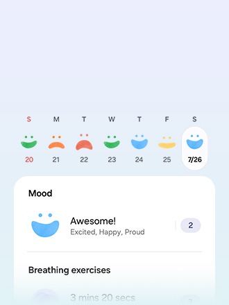 Mindfulness is as important as physical health for holistic wellness. Learn about your stress levels and relax with breathing exercises and meditation. Check in on yourself every day with Samsung Health.