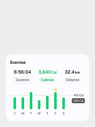 Keep track of your performance with Samsung Health. Check your progress and catch where you need to focus. Be motivated every day for a healthier you.