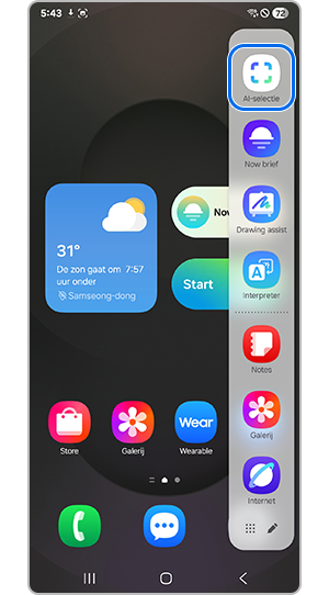 Veeg de greep van het Edge-paneel vanaf de rand van het scherm. Selecteer AI-selectie.