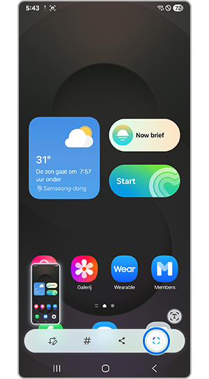 Opmerking: als de werkbalk niet wordt weergegeven, ga je naar Instellingen > Geavanceerde functies > Schermafbeeldingen en schermopnamen en schakel je Werkbalk weergeven na vastleggen in.