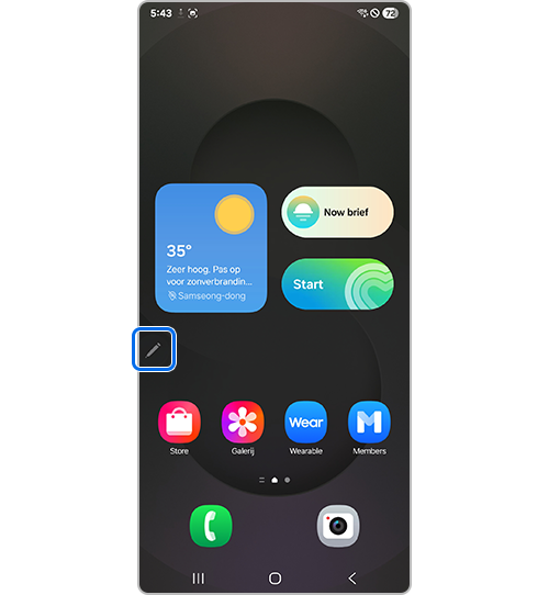 Opmerking: als je het Edge-paneel niet ziet, ga dan naar Instellingen > Display en schakel de Edge-panelen in.