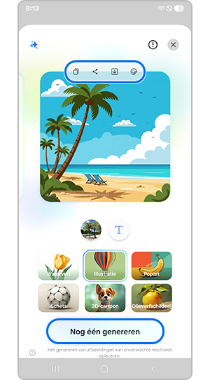 - Samsung doet geen toezeggingen en geeft geen garanties of waarborgen voor de nauwkeurigheid, volledigheid of betrouwbaarheid van de resultaten die door AI-functies worden gegenereerd.