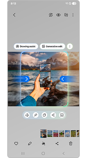 AI-selectie is een AI-functie van Samsung Galaxy waarmee je elk gebied op het scherm kunt selecteren om er slimme bewerkingen op toe te passen. Je kunt het geselecteerde gebied bewerken, opslaan of delen en tekst in het gebied herkennen. Deze functie werkt met afbeeldingen, video's en teksten en is toegankelijk via het Edge-paneel, het Air Command en de werkbalk Schermafbeeldingen.