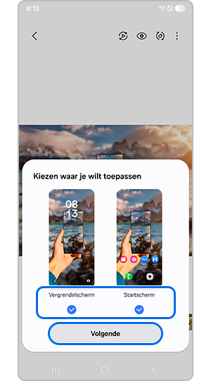 Met AI-selectie kun je het geselecteerde gebied in de afbeelding instellen als achtergrond voor het startscherm of het vergrendelingsscherm. Volg deze stappen: