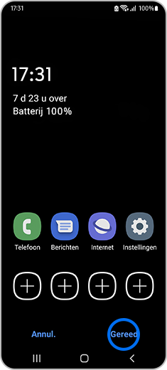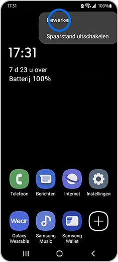 Instellingen → Batterij en toestelonderhoud → Batterij → Energiebesparing → Tik op de schakelaar naast de optie Applicaties en startscherm beperken.