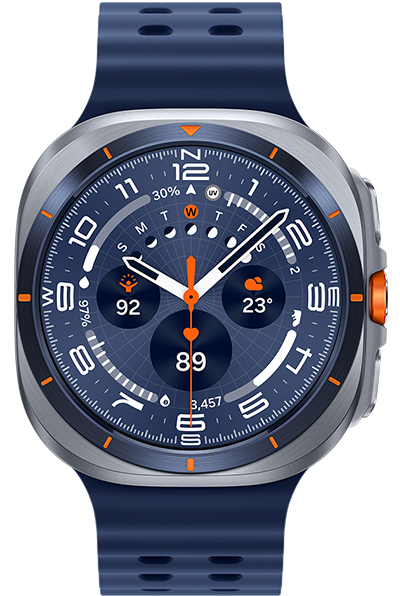 De Galaxy Watch Ultra is gemaakt om grenzen te verleggen. Het is tegen temperaturen tot 55 °C, 9.000 m hoogte en 10 ATM waterdruk, en blijft soepel lopen dankzij een nieuwe, krachtige processor van 3 nm. Je komt verder dankzij een batterij die in de energiebesparingsmodus tot 100 uur meegaat. De nieuwe BioActive-sensor volgt je op de voet en Galaxy AI* biedt je de inzichten, zodat jij je grenzen kunt verleggen. Nu verkrijgbaar in Titanium Blue - een kleur die staat voor veerkracht en klaar is om je overal naartoe te brengen, hoe ver weg of dichtbij ook. , , , , , , ,
