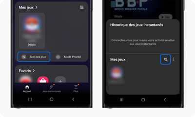 Remarque : L’emplacement de l’icône du son des jeux est différent selon le dispositif. Il est possible que cette fonction ne soit pas disponible sur certains modèles.