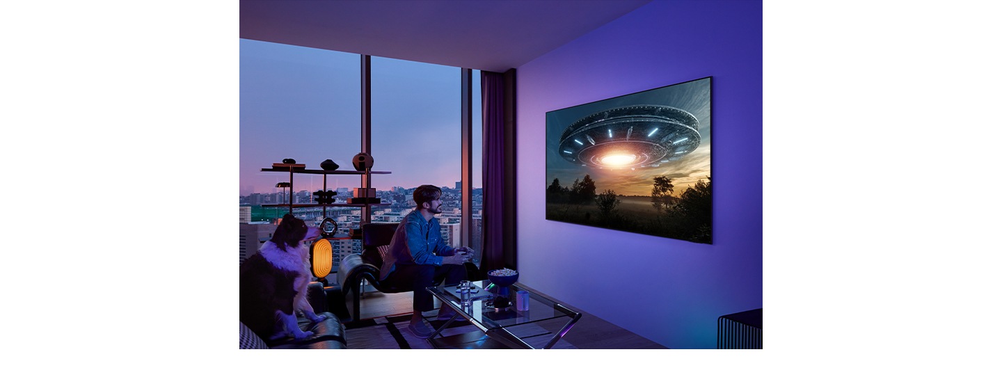 En revanche, l'OLED produit des noirs profonds grâce à des pixels à gradation autoémissive, qui produisent des noirs profonds et des blancs nets. Les TV OLED Samsung sont donc idéales pour profiter d'expériences immersives, comme regarder des films par faible luminosité.