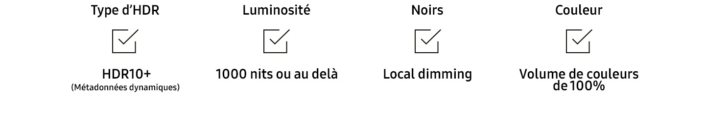 Tous les modèles QLED et Crystal UHD de Samsung supportent le HDR. Les films HDR peuvent aller jusqu'à une luminance de 4000 nits. Les télévisions QLED sont conçues pour restituer toutes les nuances des images les plus claires, grâce au Quantum HDR. Portez attention au nombre de nits : plus la télévision HDR émet un nombre important de nits, plus les nuances, la luminosité et les contrastes seront qualitatifs. Voilà les principaux éléments qui influencent la qualité d'un téléviseur HDR.