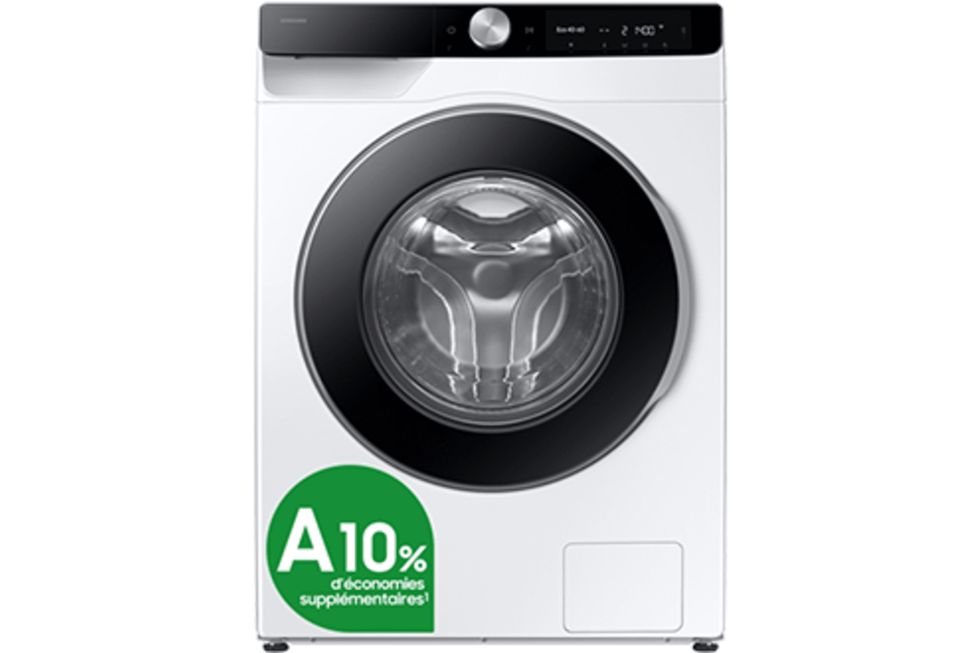 Lavez vos vêtements en consommant moins d'énergie. Le lave-linge Samsung est très économe en énergie et dépasse même de 10%* les exigences minimales en matière d'efficacité énergétique pour la classe A. Des technologies avancées améliorent les performances de lavage et réduisent le temps de lavage, ce qui diminue la consommation d'énergie.2