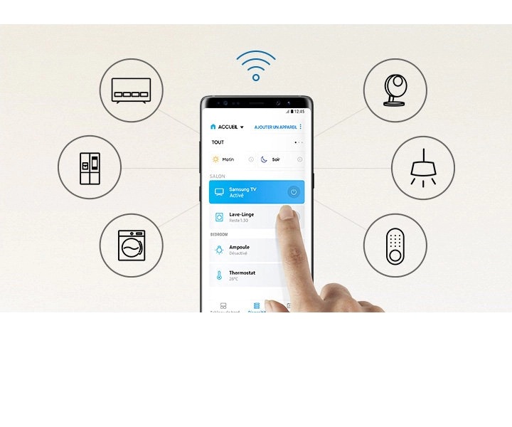 Управлявай устройствата си чрез приложението SmartThings на твоя мобилен телефон.
