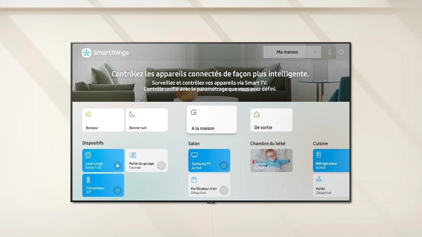 Продължи да гледаш филма на големия екран на телевизора, докато получаваш известия от останалите ти устройства. Получавай актуални данни за статуса на прането ти на екрана на телевизора без да прекъсват любимата ти сцена.
