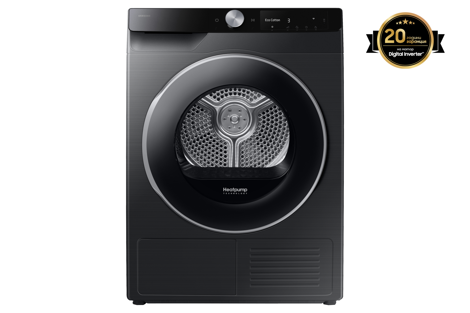 * Достъпно за устройства с Android и iOS. Необходими са Wi-Fi връзка и Samsung акаунт. Съхранява потребителски данни, предпочитания и модели на употреба, за да предложи най-полезните опции.** Препоръчителният цикъл на сушене е базиран само на време и може да не е подходящ за вида тъкани на сушените дрехи.*** Wi-Fi връзка е необходима по всяко време, което може да увеличи консумацията на енергия.