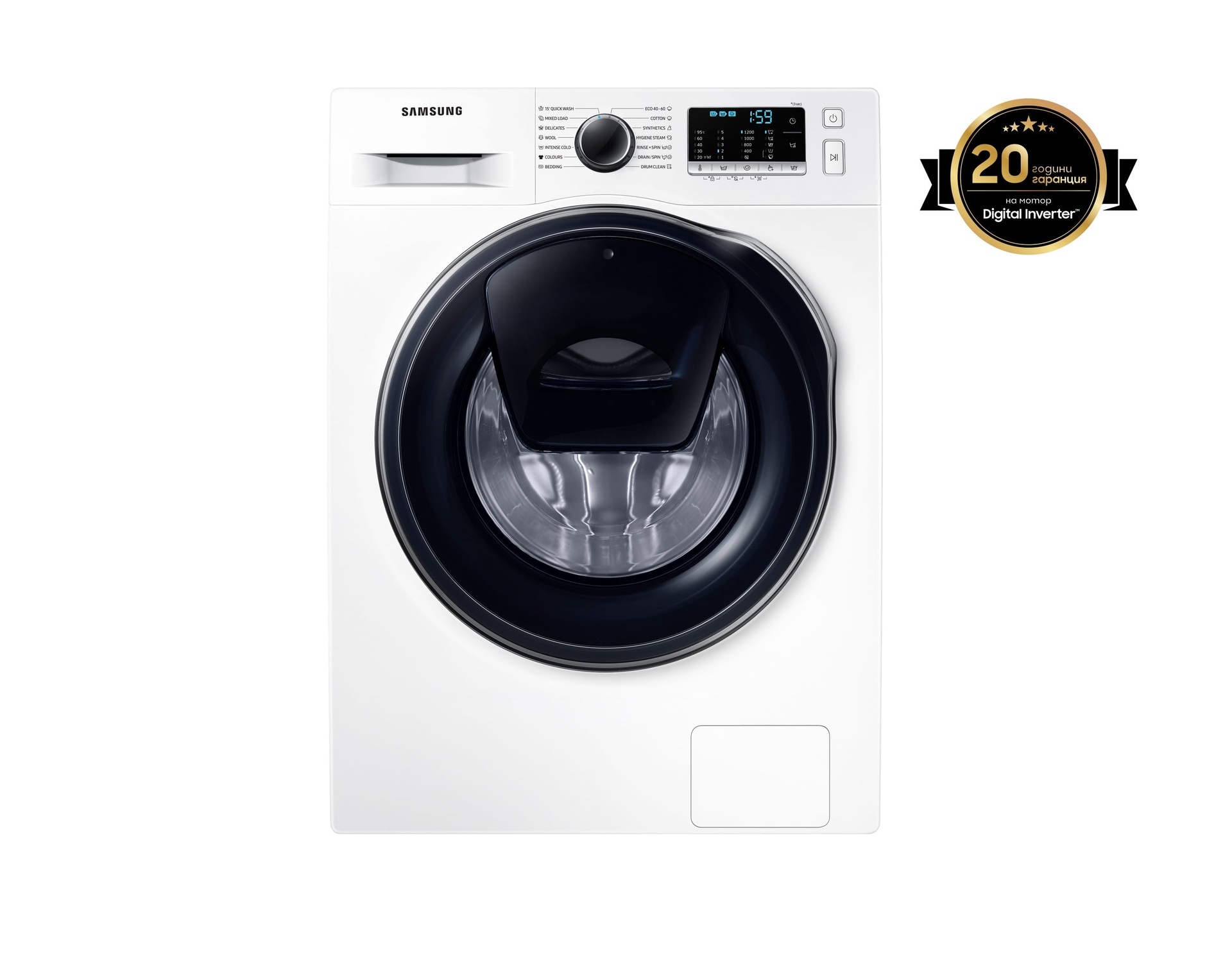 Дигиталната инверторна технология, внедрена в мотора използва силни магнити за по-тиха * и по-мощна производителност, но консумира по-малко енергия от стандартния универсален мотор. Моторът на пералнята е подкрепен с 20-годишна гаранция.6