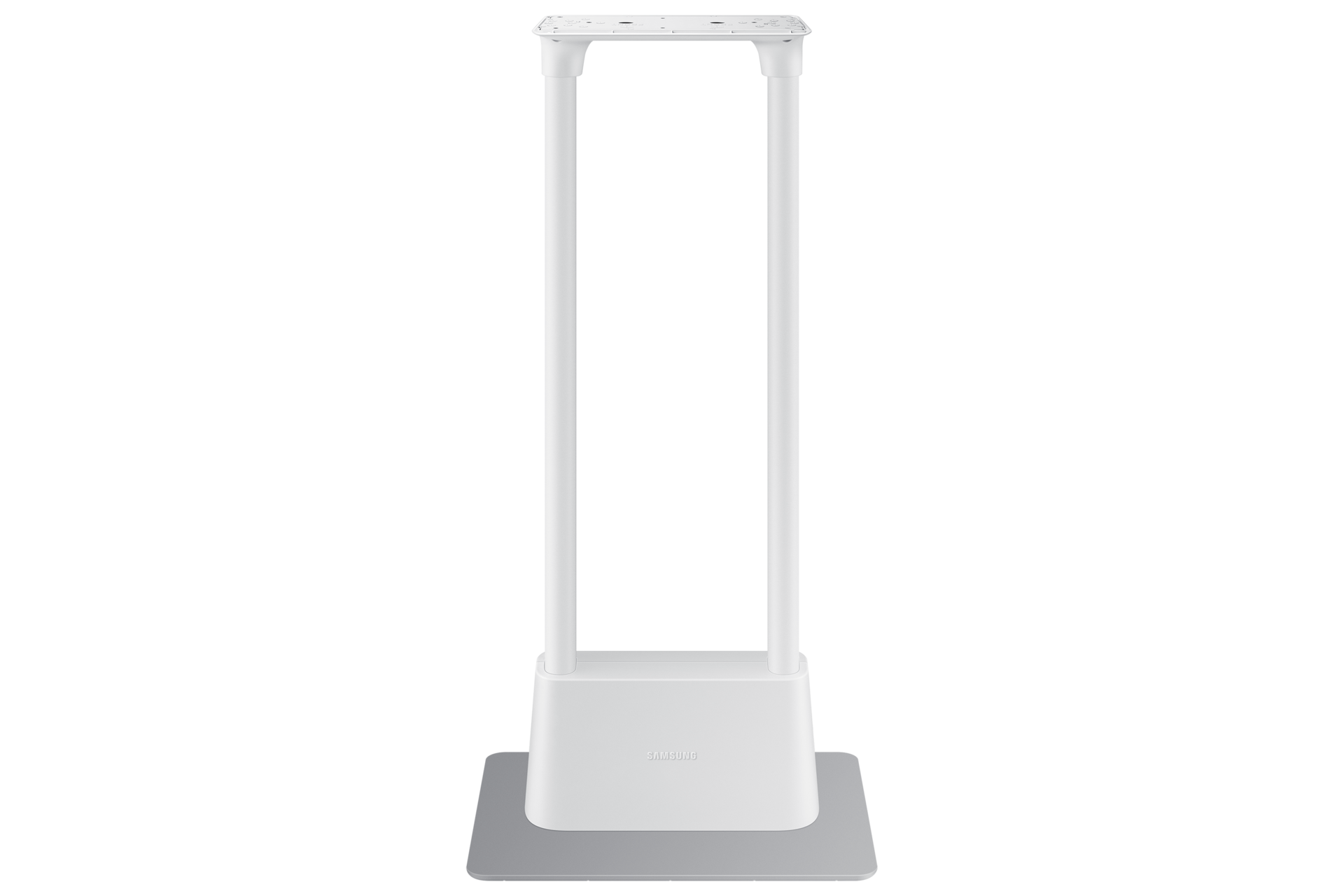O suporte compacto e simples do Kiosk Samsung permite instalação fácil, sem se preocupar com cabos. O design cinza e branco do Kiosk combina com a decoração interior, proporcionando um visual elegante.
