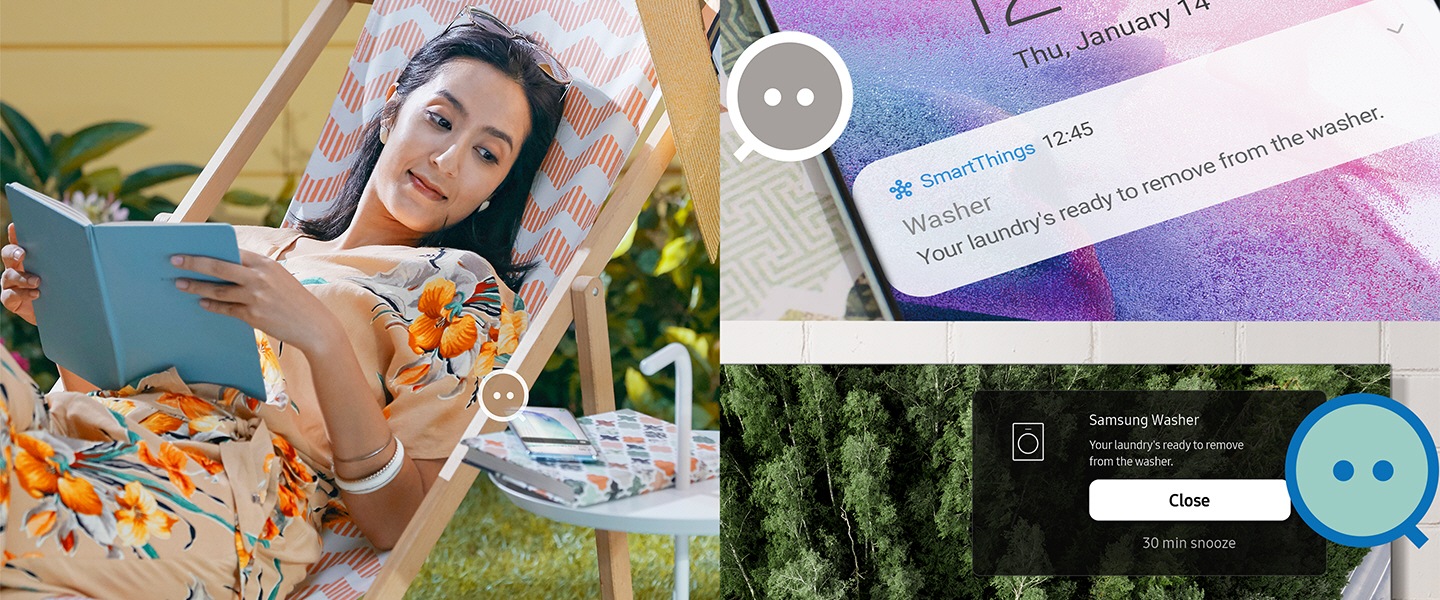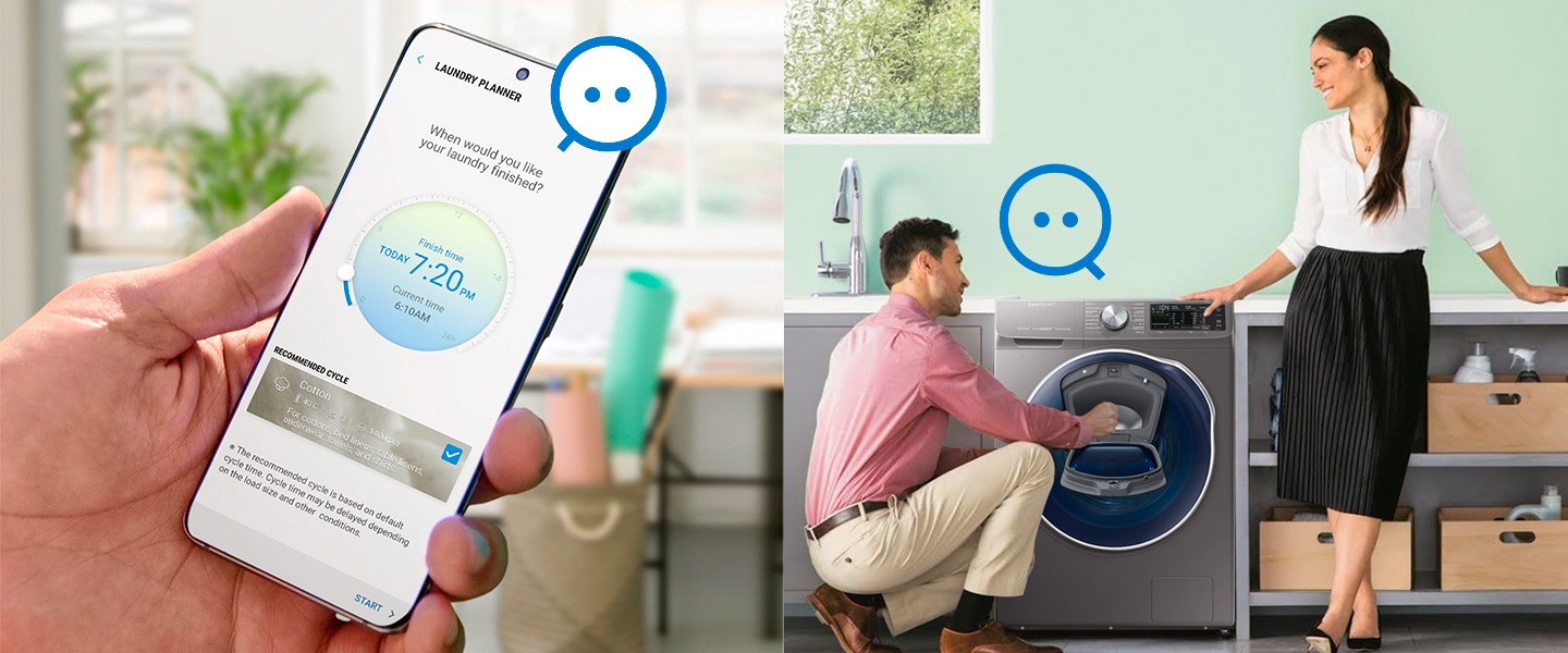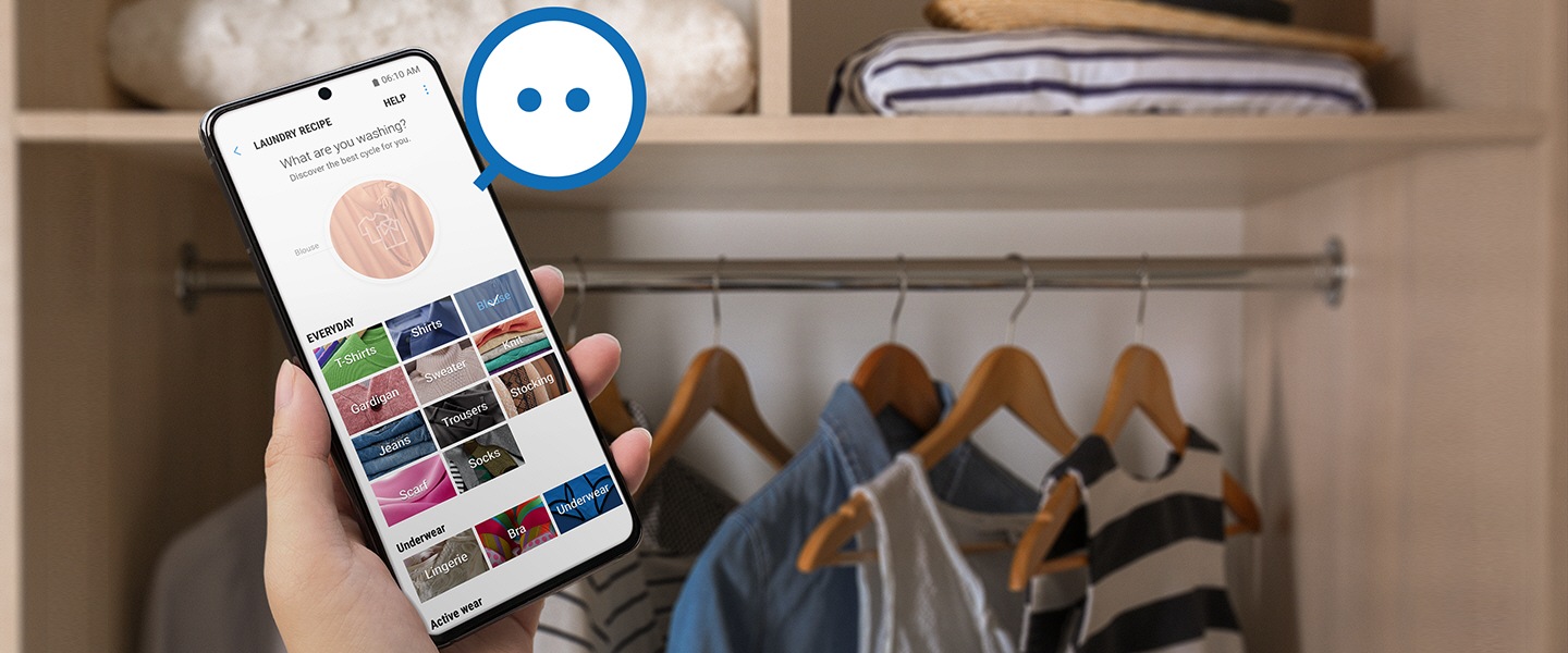 O trabalho conjunto dos smartphones e das lava e seca Samsung torna a lavagem de roupas mais inteligente. Juntos, eles ajudam você a cuidar das lavagens de qualquer lugar e recomenda as melhores configurações. Veja como tudo isso é possível e muito mais.