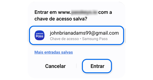 Verifique se sua Conta Samsung Pass, que armazena sua chave de acesso, foi selecionada e, em seguida, toque em Entrar.