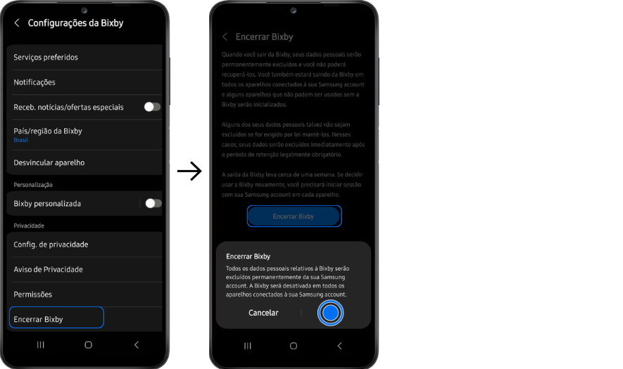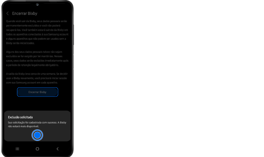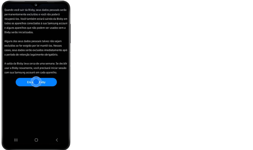 Observação: Apenas sua conta e dados associados à Bixby podem ser removidos.⚠️
