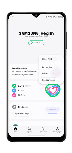 Observação: certifique-se de que está conectado à internet e com seus dados de saúde sincronizados com a sua Conta Samsung.
