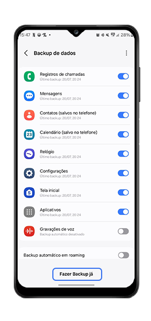 Para fazer um backup dos dados de saúde que foram armazenados no app Samsung Health, siga estes passos: